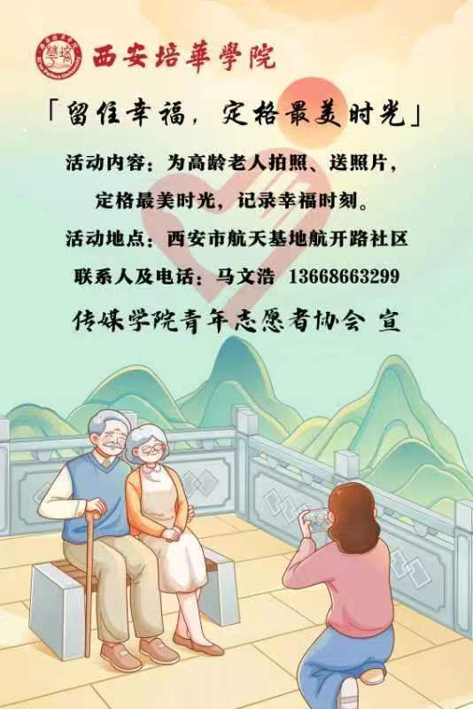 “学习雷锋好榜样,忠于革命忠于党”。在这个万物复苏、春意盎然的季节,为进一步弘扬雷锋月,倡导为社会服务贡献的精神,西安培华学院传媒学院青年志愿者协会响应校团委积极开展的雷锋月系列活动。于2023年3月5日8:00集体前往航天基地航开社区,开展了“留住幸福,定格最美时光”的主题活动。参与本次活动的志愿者有13人,为100余位社区居民拍摄200余张照片,深入社区,记录社区居民的平凡幸福时刻。