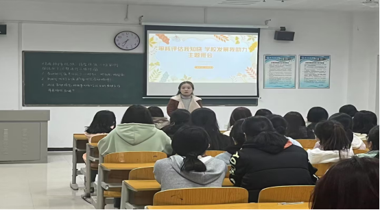 本科教育教学审核评估工作不仅能够集中体现一个学校的办学特色,而且能够有效检验一个学校的教育教学质量。为了更好地迎接本科教育教学审核评估,展现培华学子优良的学风与奋发有为的精神面貌。3月19日下午,西安培华学院传媒学院开展了“审核评估我知晓,学校发展我助力”主题班会活动。全院辅导员在不同时间段分别举行了审核评估主题班会活动,围绕着在审核评估过程中学生应知、应会的内容,对学生进行逐一宣讲,让学生深刻认识到开展本科审核评估的目的及意义。
