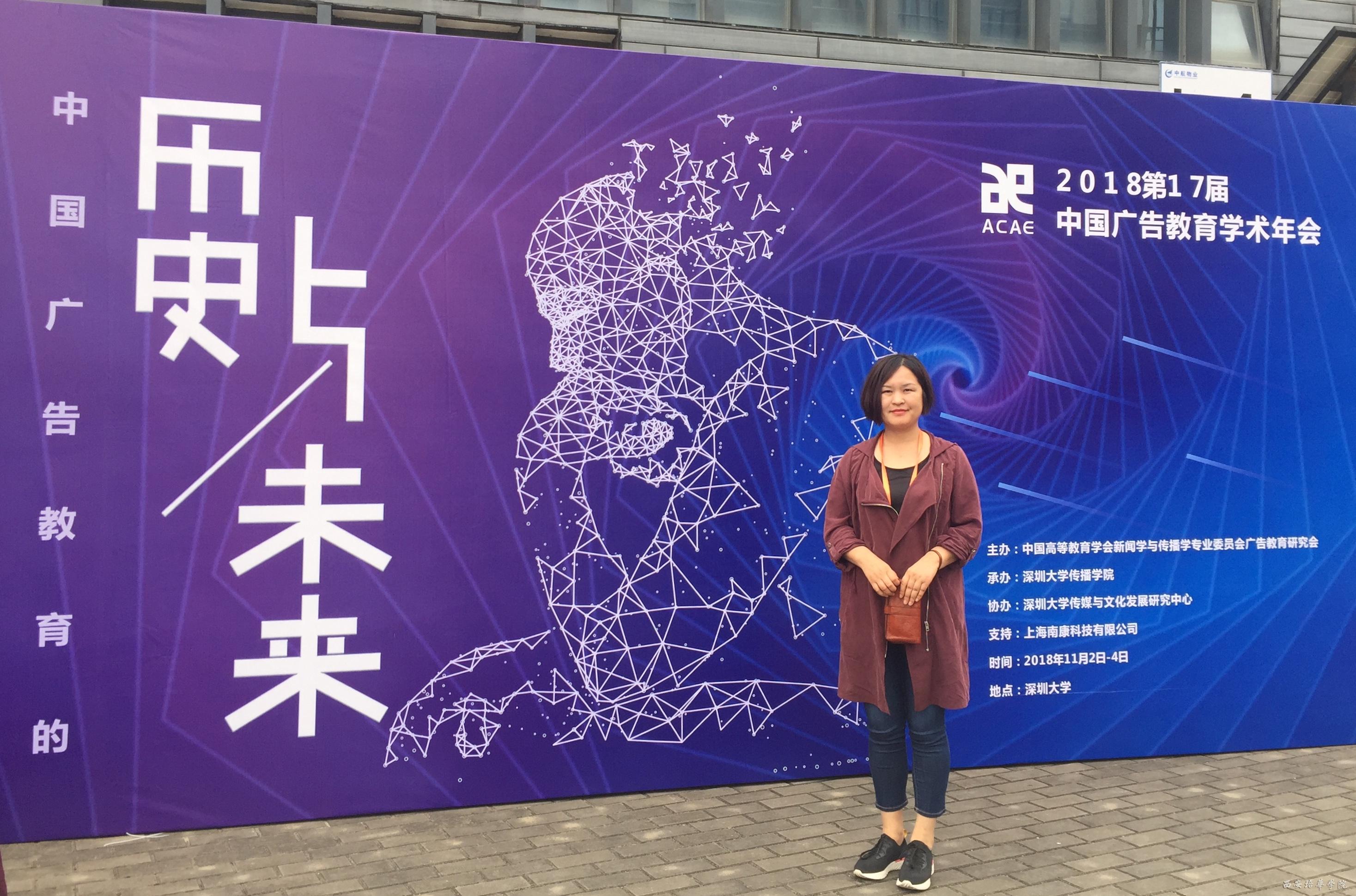 为更好地提高教师的学术研究能力,提高专业教育改革质量,我院新闻传播系教师张荣花在11月2日到4日参加了“2018第17届广告教育学术年会”,年会在深圳大学举办。本次年会由中国高等教育学会新闻学与传播学专业委员会广告教育研究会主办,深圳大学传播学院承办、深圳大学传媒与文化研究中心协办。大会在深圳大学传播学院王晓华院长主持开幕,由中国传媒大学、武汉大学、北京大学、上海师范大学、广州平成广告有限公司等各单位的学者专家就广告行业发展、广告教育、人才培养等当下问题进行了主题演讲。