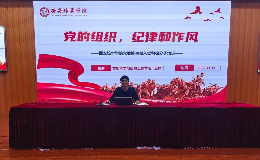 第一讲《党的组织、纪律和作风》,主讲人:智能科学与信息工程学院党总支书记 王林