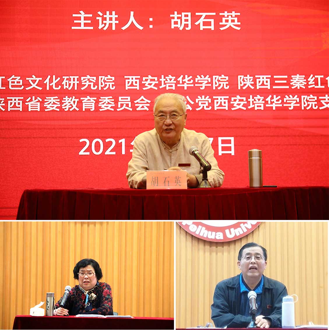 践行“四个一”工程,立足实际,创新活动形式。习近平总书记说过:“历史是最好的教科书,也是最好的清醒剂。”根据学院党委工作实际情况,在各个支部开展“四个一”工程,即:一周一观影,一周一学习,一周一打卡,一周一反馈。用红色文化培育人,创新党史教育形式,学校专门开设“红色文化进校园 革命后代讲家风”课程,面向全校师生邀请革命后代讲述共产党人的故事。胡乔木同志之子、西安培华学院名誉校长胡石英,陕西省红色文化研究院秘书长、陕西三秦儿女红色文化传播中心主任王放,中国年龄最小的革命烈士小萝卜头的外甥时欣生老师先后为青年学子讲述革命故事。