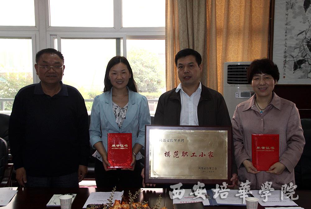 为弘扬先进,发挥榜样的导向作用,激励各级工会组织和广大工会干部立足岗位创先争优,为办好人民满意的教育事业建功立业。陕西省教育工会日前表彰了一批深受广大教职工群众信赖和赞誉,并在工会工作中做出了优异成绩的先进集体和先进个人。我校人文与艺术学院工会荣获“陕西省教育系统模范职工小家”光荣称号;田红同志荣获“陕西省教育系统优秀工会工作者”称号;薛清同志荣获“陕西省教育系统优秀工会积极分子”称号。