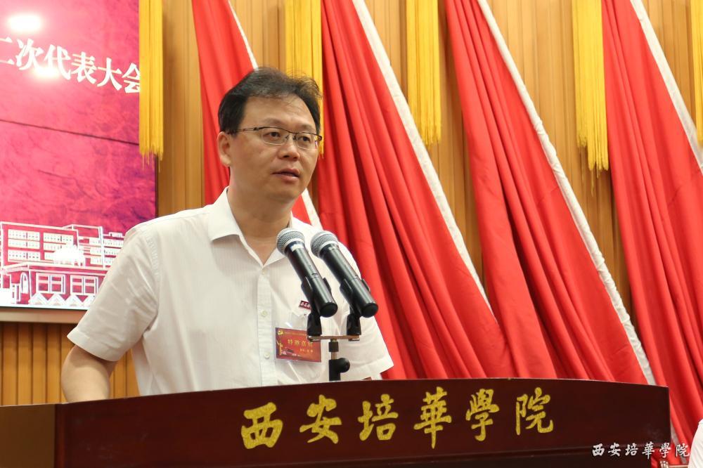 特邀代表、我校理事长姜波博士对中共西安培华学院第二次代表大会的召开表示热烈祝贺,并发表重要讲话