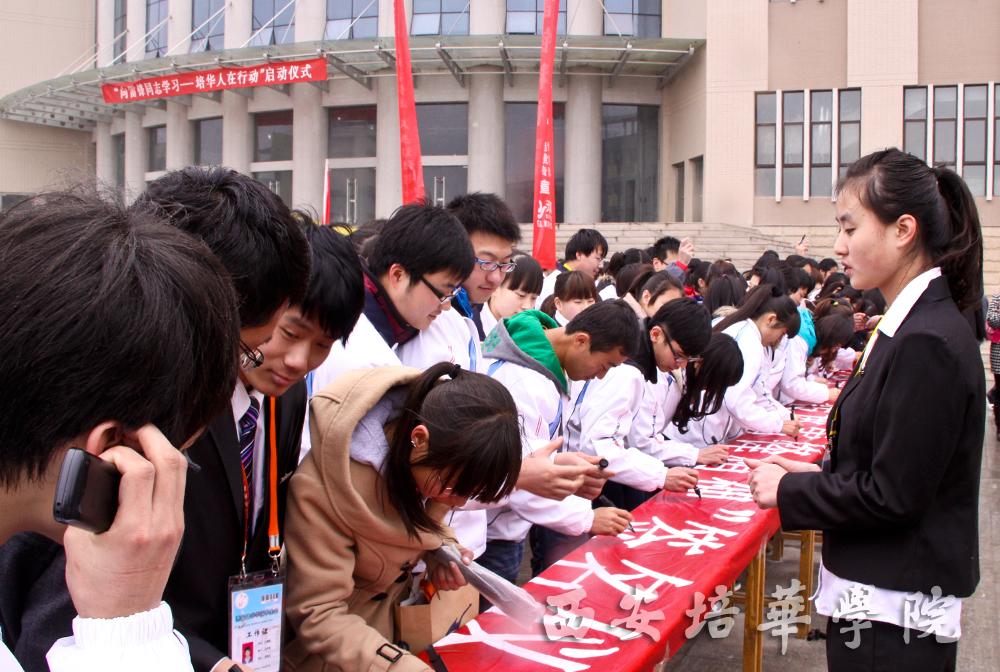 仪式上,校团委书记王叶青宣读了《西安培华学院深入开展学雷锋系列活动实施方案》。学生代表闫春锋宣读了《学雷锋倡议书》,全体与会师生在李爱琴处长的带领下进行了庄严的宣誓和“向雷锋同志学习——培华人在行动”签名仪式。