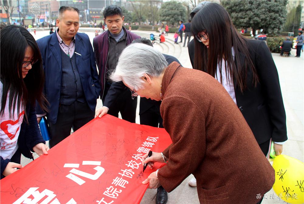 人文学院青年志愿者协会在长安广场开展“学雷锋,忆传统,献爱心”的活动
