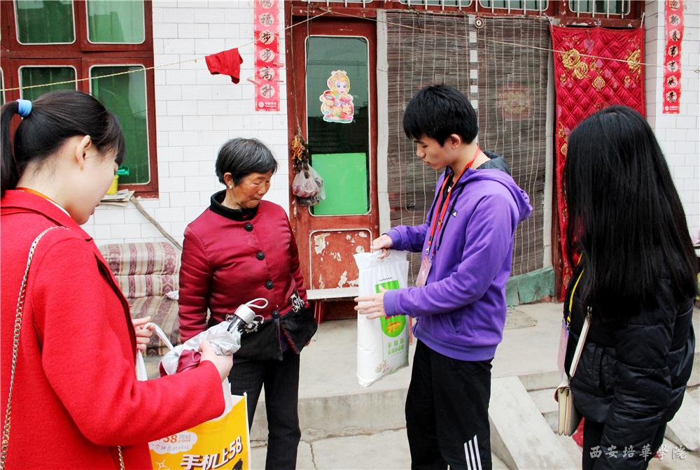 商学院生活、生涯导师王思思和团总支学生会干部们走进皇甫村,看望孤寡老人送温暖