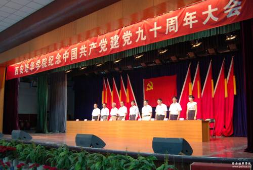 午,我校长安校区大学生活动中心庄严肃穆,西安培华学院庆祝中国共产党成立