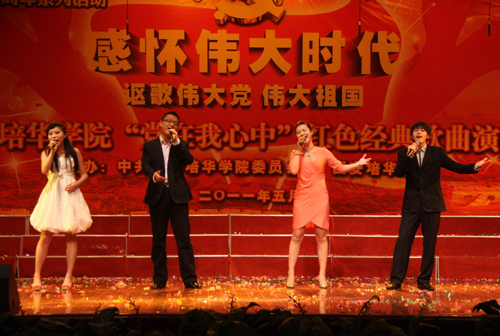 下午,我校在长安校区大学生活动中心举行“党在我心中”红色经典歌曲演唱会,表达对党的热爱和伟大祖国的歌颂。我校院长陈明华,党委书记王斗虎,副院长杨定君、王根性、刘应南、王拴才等领导以及师生代表1000多人共同观看了演唱会。