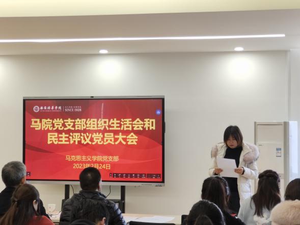 为深入学习贯彻党的二十大精神,全面贯彻习近平新时代中国特色社会主义思想,马克思主义学院于2023年2月24日下午,召开了组织生活会和民主评议党员大会,本次会议由党支部书记寇军强主持,大会有两项议程。