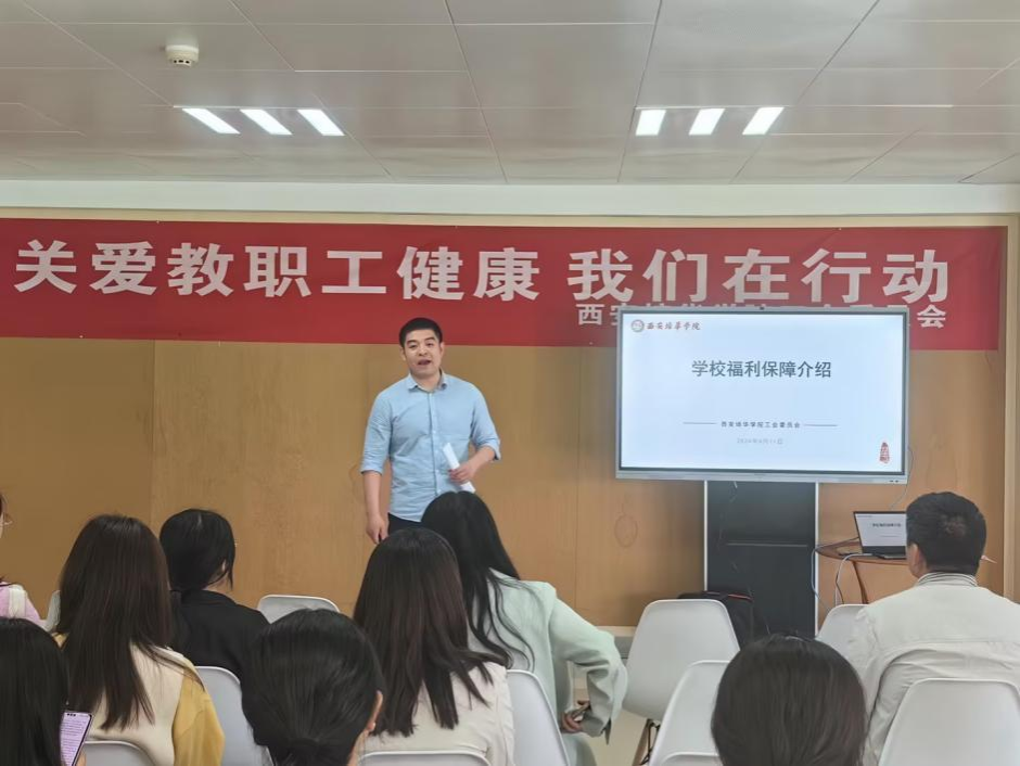 2024年4月11日下午,校工会在明德楼教工之家举行学校福利保障宣讲会。本次讲座由校工会干事马岸奇老师主讲,近40名新入职教职工参加。