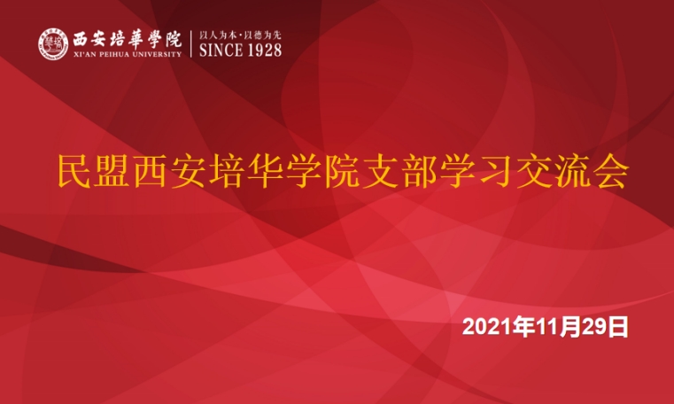 2021年11月29日,为深入学习贯彻中国共产党第十九届中央委员会第六次全体会议精神,民盟西安培华学院支部盟员开展了学习交流活动,旨在进一步统一思想、凝聚共识,为推动中国特色社会主义伟大事业贡献力量。