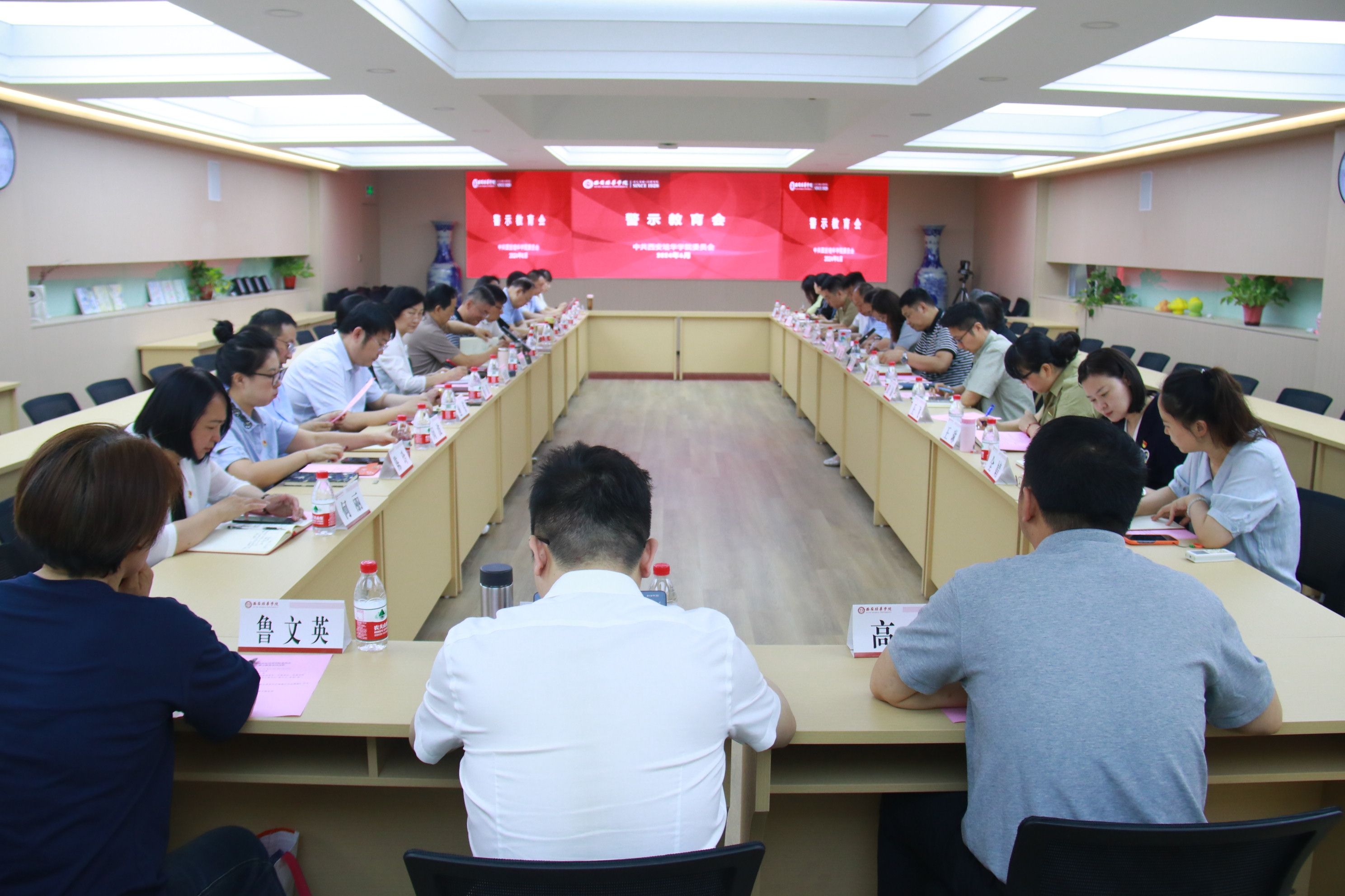 6月14日,西安培华学院党纪学习教育警示教育会在明德楼第二会议室召开。会议深入学习贯彻习近平总书记关于全面加强党的纪律建设的重要论述,落实党中央关于开展党纪学习教育的部署要求,观看了警示教育片《持续发力 纵深推进》,深刻剖析了教学事故案例。党委书记刘锋作题为《深化以案说德以案说纪以案说法以案说责 不断巩固发展风清气正的政治生态》的专题党课,教育引导全校广大党员干部自觉学纪、知纪、明纪、守纪,推动党纪学习教育走深走实、见行见效。全体校领导,党委委员,纪委委员,各基层党委、党总支、直属党支部书记、副书记,各院(部)、中心主要负责人参加此次会议。刘锋主持会议。