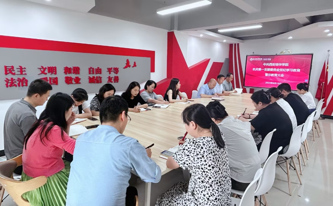 为推动党纪学习教育走深走实,见行见效,2024年6月19日,西安培华学院机关第一党支部在明德楼党员活动中心召开党纪学习教育警示教育大会,会议由党支部书记李健主持。