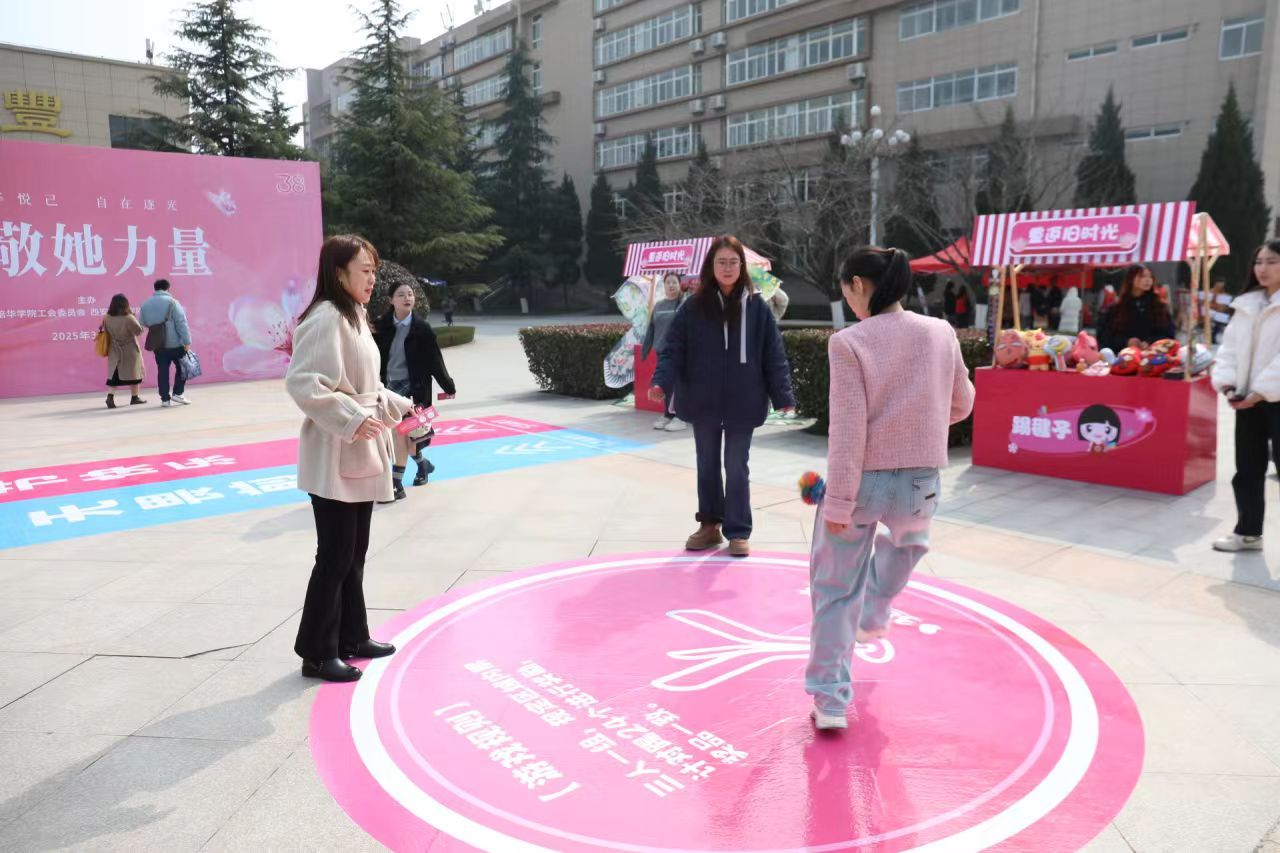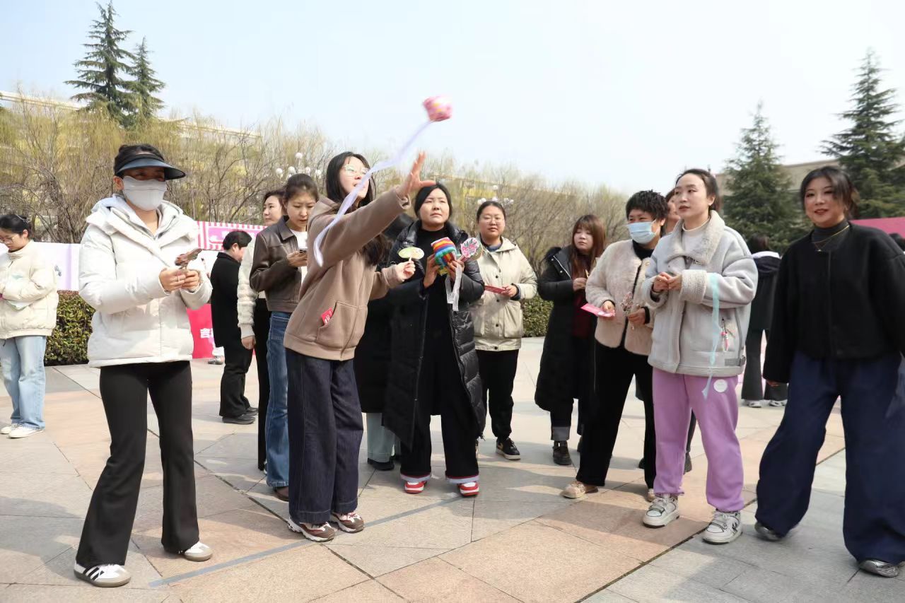 3月7日,“我们的美好时光”游艺会、培华女性教育展、性别平等基本国策宣传在丰园餐厅西广场拉开帷幕,陕西省教科文卫体工会主席徐富权,西安培华学院党委书记刘锋,党委副书记、副校长姚文静,副校长罗新远,校工会主席陈玲与女教职工们一起,共同了解发展中的女性力量,在怀旧游艺与非遗文化中回味儿时快乐。