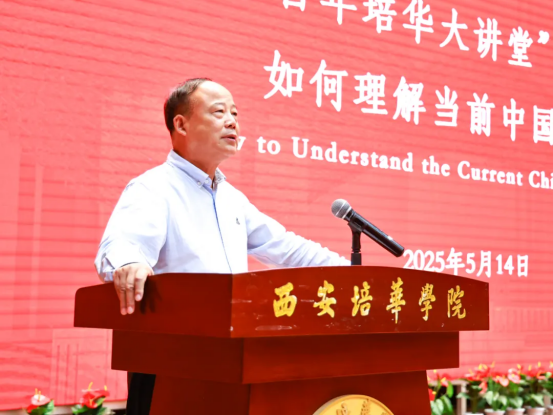 2025年5月14日下午,西安培华学院图书馆报告厅座无虚席,一场由西安培华学院关心下一代工作委员会、会计与金融学院和科研管理中心共同举办的学术盛宴拉开帷幕。作为“百年培华大讲堂”系列活动的首讲,本次以“如何理解当前中国经济”为主题的讲座,成功邀请到中国人民大学经济学院教授、博士生导师,北京大学首位经济学博士后李义平担纲主讲,充分展现了关工委在青年学子思想引领与学术培育中的关键作用。出席本次讲座的有西安培华学院关工委主任、党委书记刘锋、副校长罗新远、会计与金融学院院长吴旺延、党委书记兼行政副院长刘斌、副院长丁阳,讲座由罗新远副校长主持。
