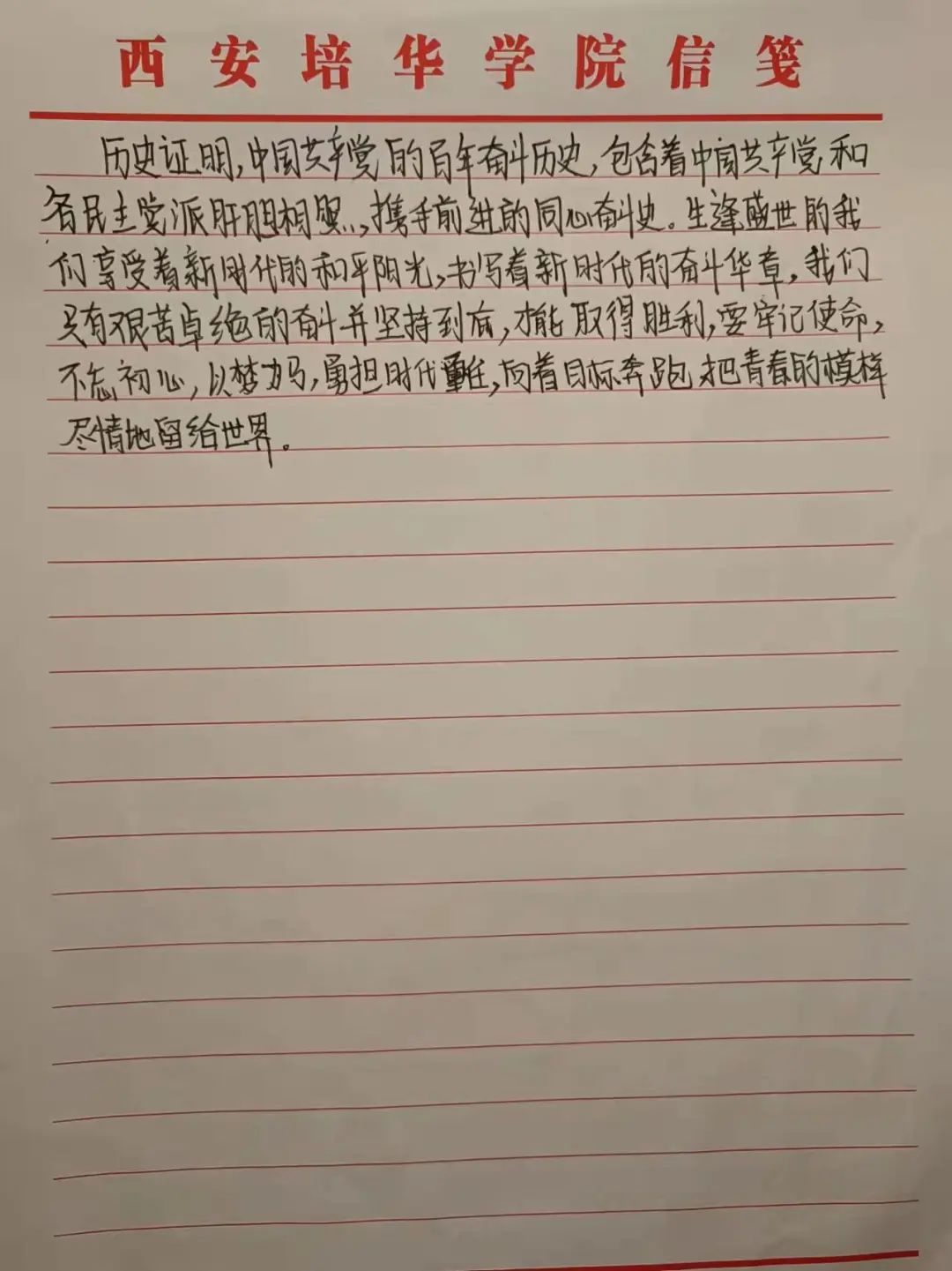 各个学生党支部成员通过手中笔墨或是从假期“四史”学习选取具体党史故事展开论述,客观真实的抒发对党的百年征程路的认识,感悟党的百年奋斗重大成就和弘扬党的光荣优良传统,亦或是以北京冬奥会的历史渊源讲起,分享了中国奥运健儿在冬奥赛场上的典型故事,学习爱国强体、永不放弃的精神。