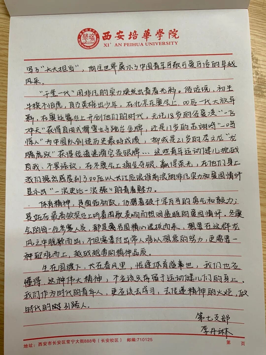 冰雪之约,举世瞩目,2022年北京冬奥会圆满闭幕,中国人民向世界奉献了一届简约、安全、精彩的奥运盛会。作为青年大学生要从冬奥精神及女足精神中汲取智慧力量并融入学习生活,作为学生党员要深刻认识到中国共产党领导和中国特色社会主义制度的显著优势,筑牢自觉听党话、跟党走的思想根基,立大志、明大德、成大才、担大任,努力成为堪当民族复兴重任的时代新人。