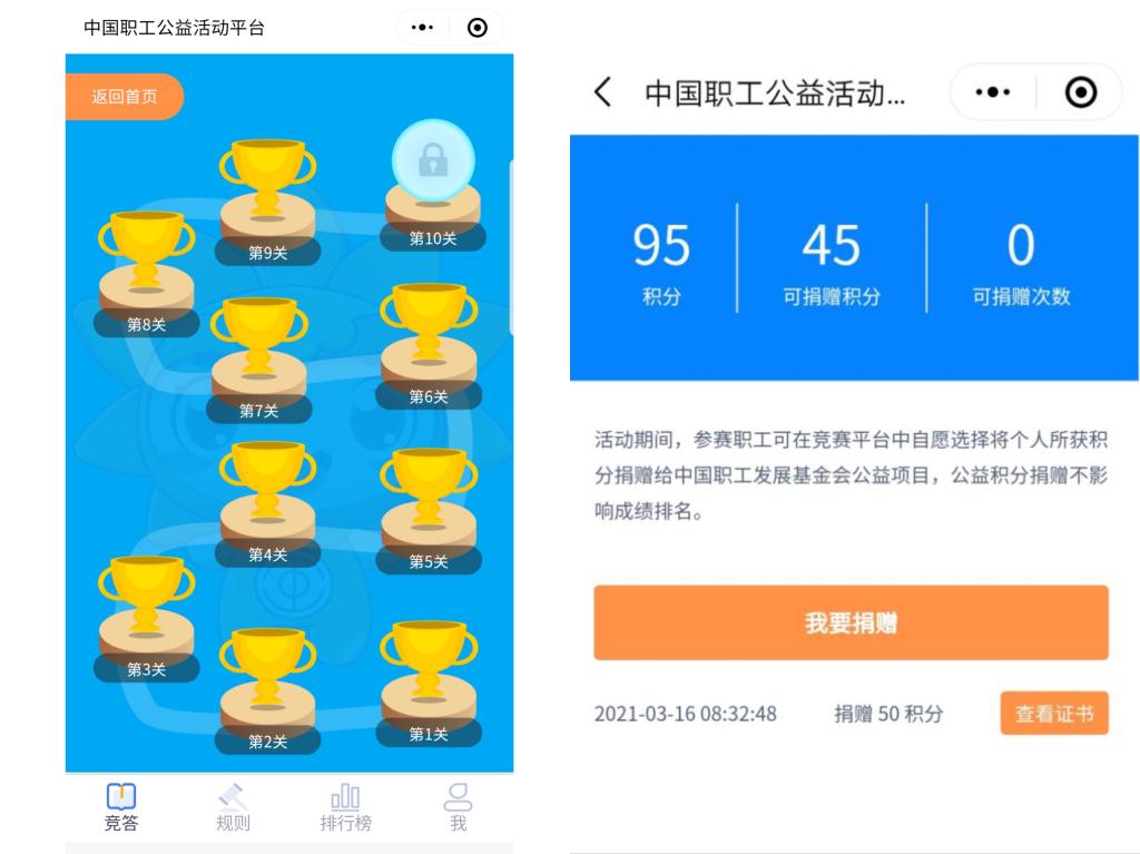 各教职工坚持每日答题,累计积分,部分教职工获得竞答活动捐赠证书。