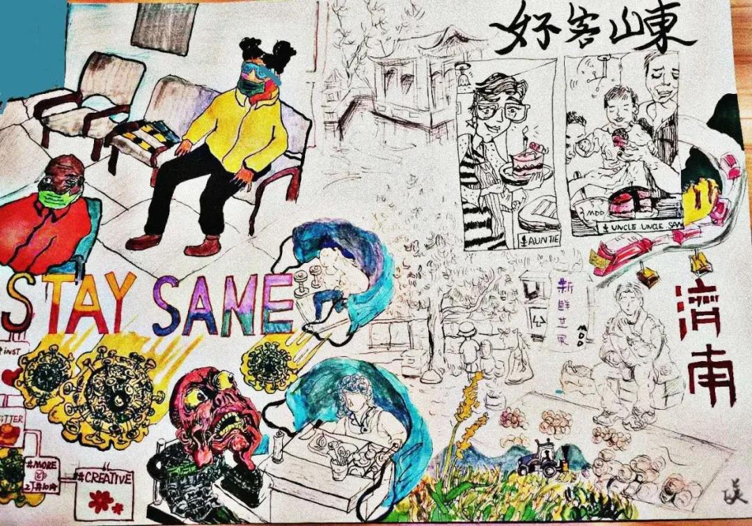 《好客山东》体现了疫情期间、疫情后的景象,地处大公鸡地图鸡脖子位置的山东连夜吭哧吭哧支援武汉,同时也反映了疫情后人民生活的美好景象。为此想告诉人们,我们不是一个人在战斗,我们虽不在一处,但我们的心在一处,“我们一起抗疫”。人们幸福安康的愿望存在于每个人心中,疫情期间每个人献出的爱像风中的蒲公英一样遍布各国大地。