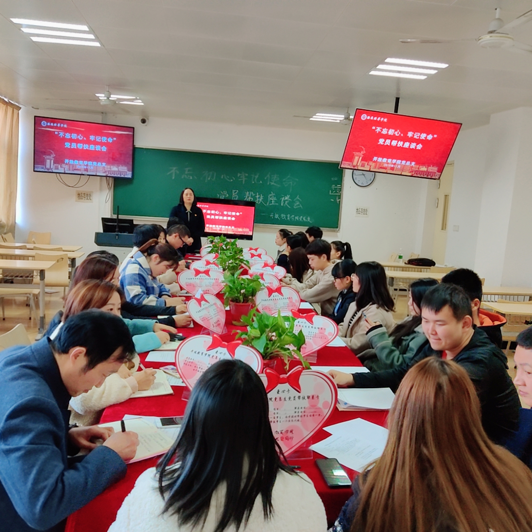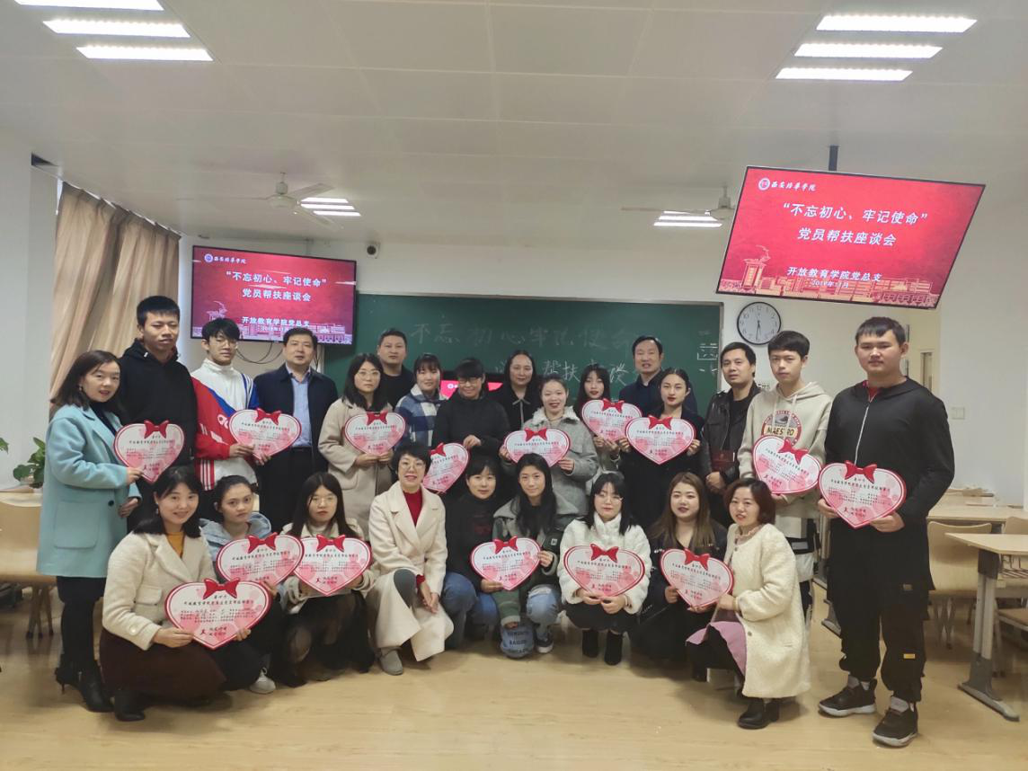 为落实立德树人任务,加强帮扶师生的交流和沟通,对帮扶活动进行总结。2019年11月13日下午,开放教育学院党总支组织参与帮扶活动的党团员在格物楼1602室召开了“不忘初心 牢记使命”党员帮扶座谈会议。