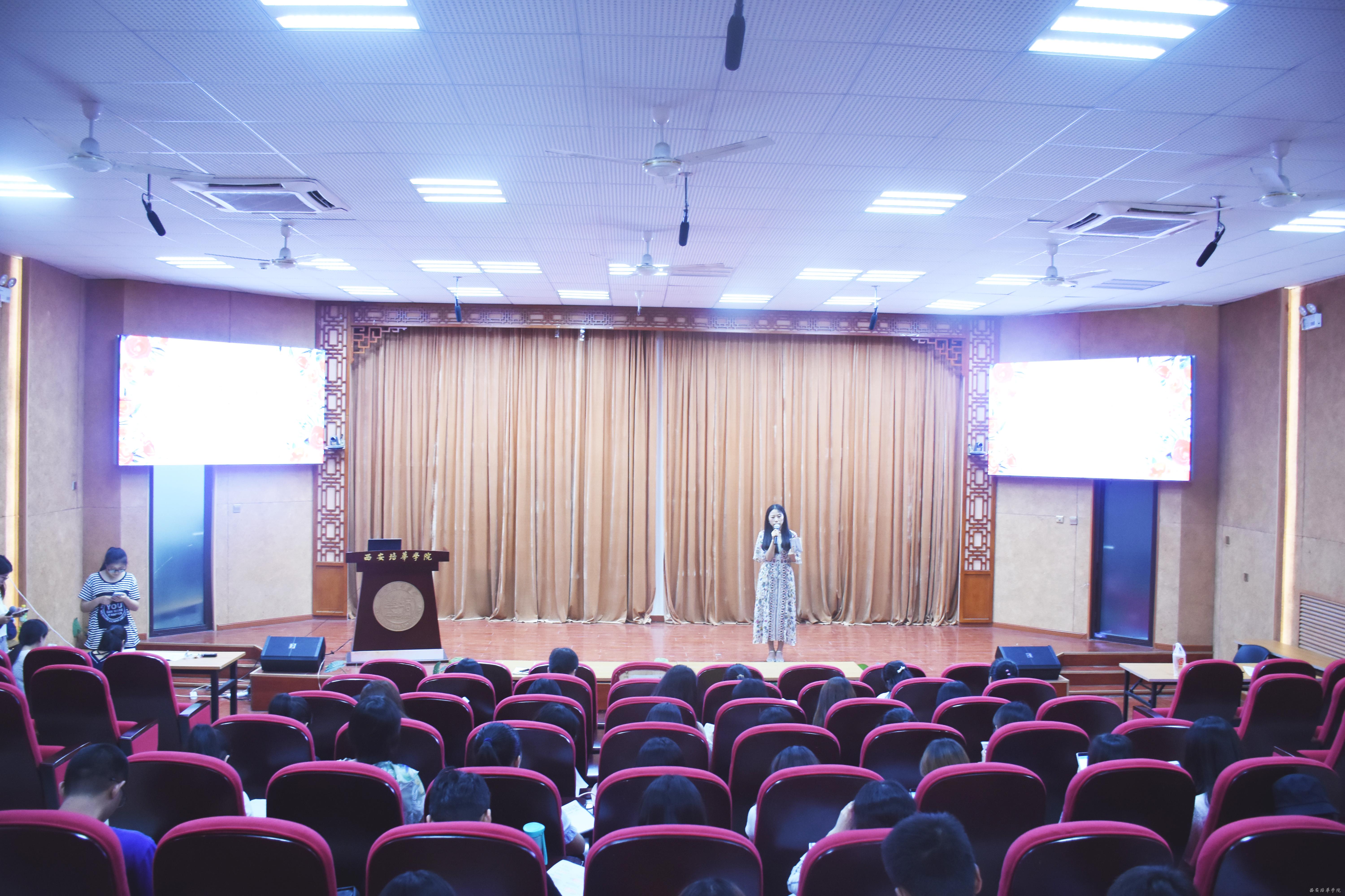 活动结束后,张芳老师上台做总结讲话。张老师肯定了组织人员的前期准备和同学们的本次成果。并对“朗诵”、“朗读”、“阅读”的区别进行了解释,指出了本次朗诵会的目的和意义——通过朗读熟悉作品,体会主题,把握情感。