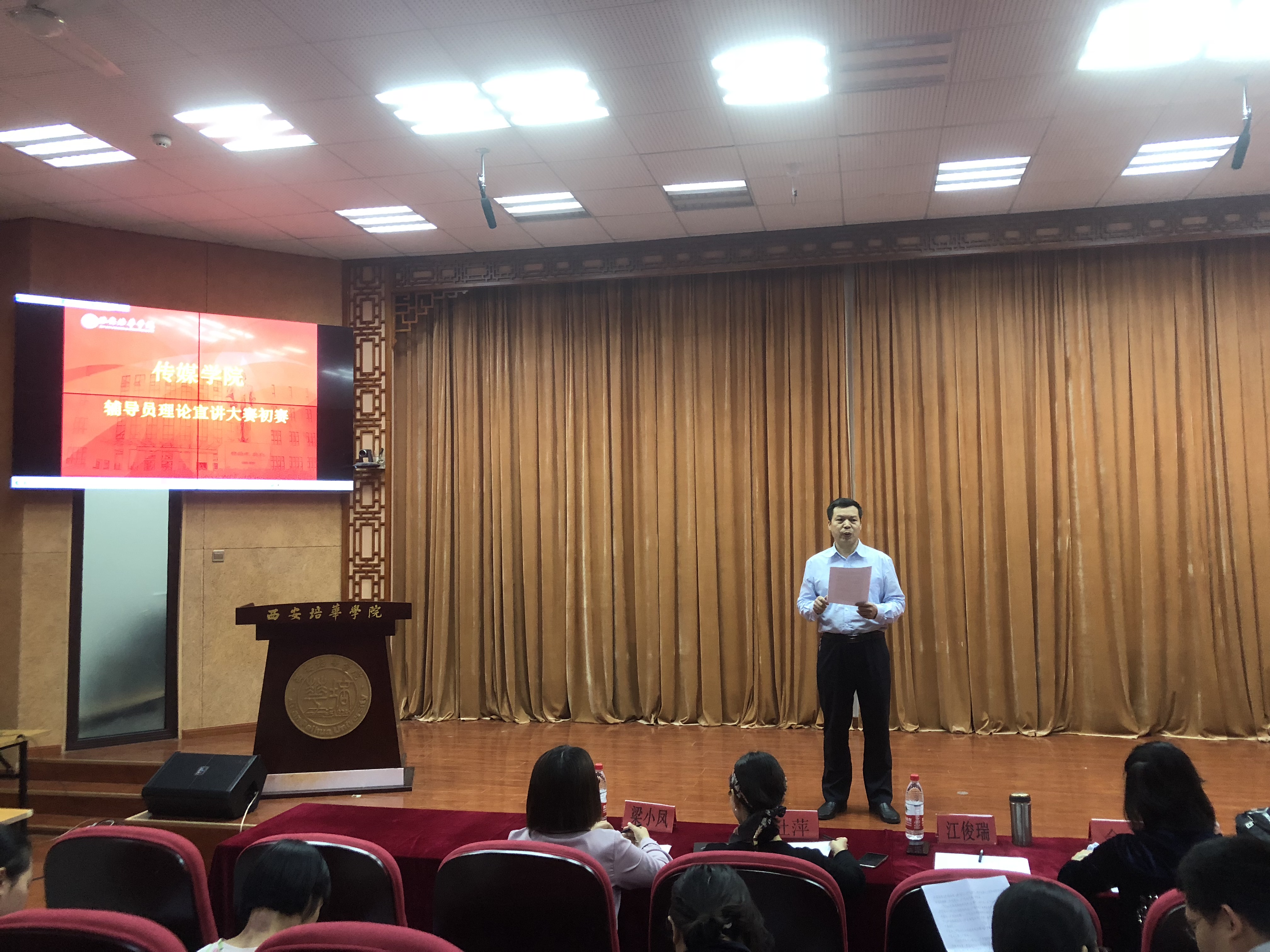 为深入贯彻落实全国高校思政工作会议精神进一步加强辅导员理论思想高度、政策解读能力和演讲宣传水平。提升辅导员开展大学生思想政治教育工作质量。2018年5月23日传媒学院辅导员理论宣讲比赛在国学大讲堂顺利进行,传媒学院全体辅导员参赛。行政副院长江俊瑞、院长助理杜萍、新闻专业负责人梁小凤和播音专业教师余文担任评委。