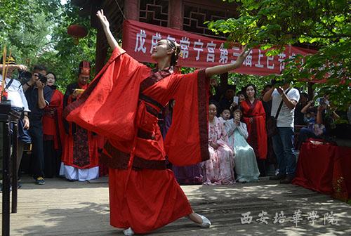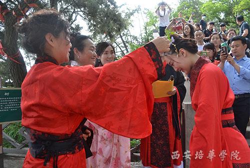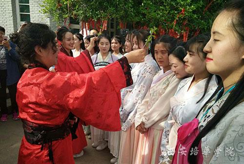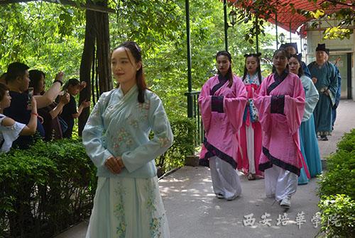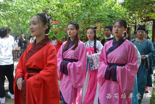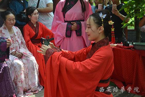 着我华夏衣裳,兴我礼仪之邦。2018年4月21日,西安培华学院人文学院诗词教育基地协同陕西传统文化研究协会在常宁宫成功举办了“戊戌年常宁宫第三届上巳节成人礼祈福”活动。