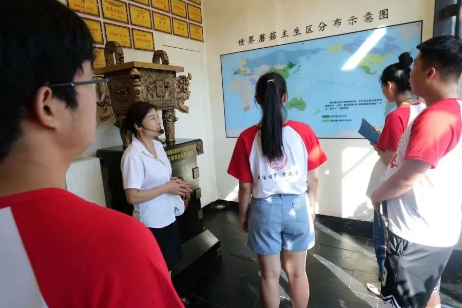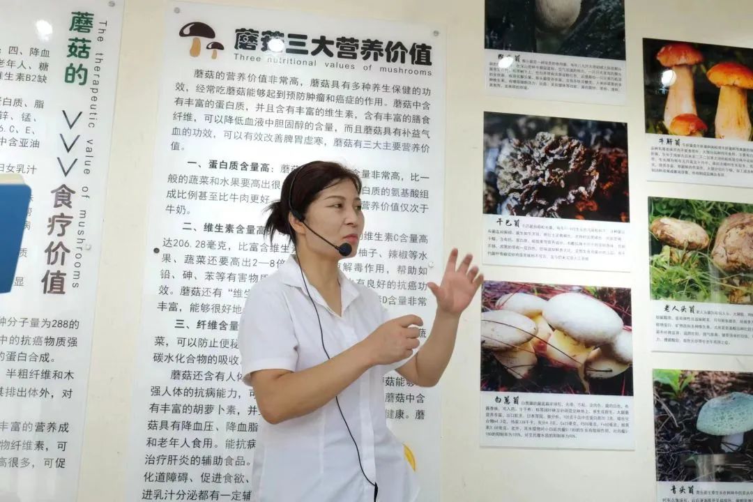 在完成对接工作后,7月24日9:00解天华理事带领实践团队抵达陕南石叁珍蘑菇宴餐饮博物馆,解天华会长为实践队员详细的讲解了博物馆的创立时间,负责人;野生蘑菇在全球和全国的分布;以及馆内整体的设计理念是按照菌类生物的生长环境排列;并罗列了许多不同的窗口为团队成员展示。