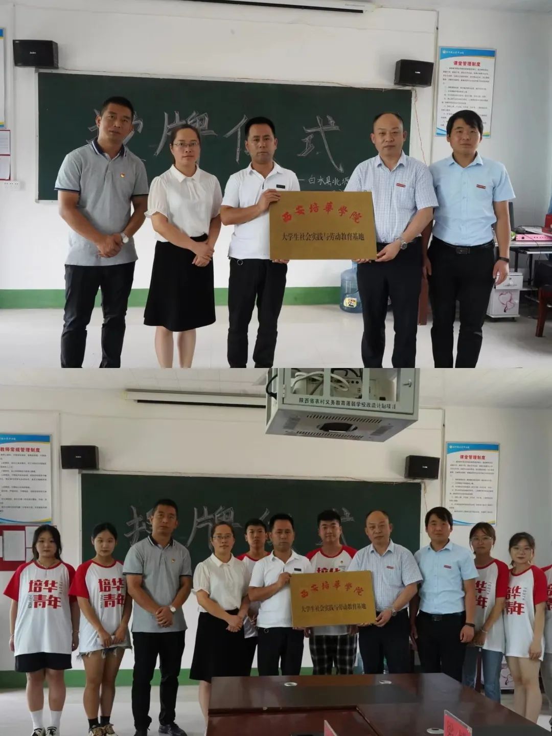 7月25日,西安培华学院大学生劳动教育实践基地揭牌仪式在白水县北塬镇中心小学顺利举行。白水县团县委少先队总辅导李莉、县教育局代表师木楠、北塬中心小学校长屈杨军、西安培华学院会计与金融学院党委书记兼行政副院长史立军、西安培华学院会计与金融学院辅导员梁博、西安培华学院学生代表,出席揭牌仪式。