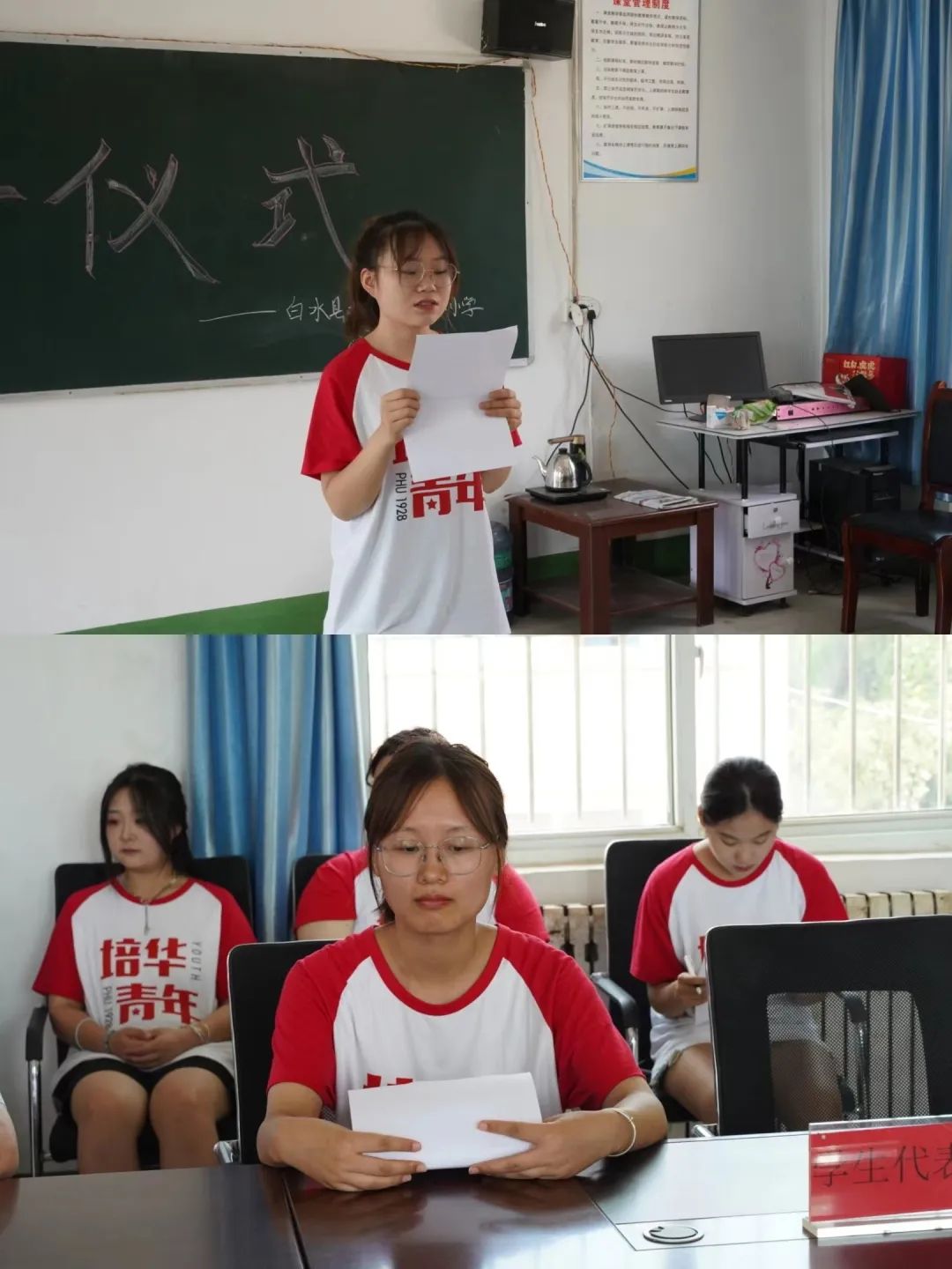 西安培华学院会计与金融学院杨思雨、张格作为学生代表发言表示:作为青年人的我们,青春就是我们冲锋陷阵的资本,年轻没有什么不可以,因为年轻,我们就要义无反顾的奔赴祖国和人民最需要我们的地方,我们本着服务社会,回报社会的原则,努力塑着造当代青年大学生的健康形象。在汗水中前行,在奉献中快乐,不管有多难,我们的脚步都不会停止!