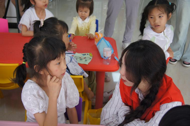 第三站到达城关社区开展“青年党员讲党课实践活动”,队员们通过简洁明了的语言让孩子们认识五星红旗、画国旗、听爱国故事、唱红色歌曲,同时孩子们也知道了《义勇军进行曲》的曲作者和五星红旗的设计者是谁等等这些小知识。一天的学习是远远不够的,党史教育只有进行时,没有完成时。