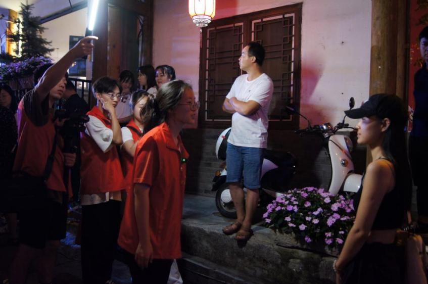 第二站到达留坝县老街,活动围绕游客调研和宣传片素材采集为主。留坝老街特色集中在古街建筑、传统文化展示方面,这里有持续一个小时的各种歌舞、乐器演奏、舞龙舞狮等表演,很多外地的游客在此逗留,团队的成员们开始进行街头采访,从中了解游客对于留坝县的交通、饮食、旅游地的建设等方面的意见,为调研报告提供扎实的数据基础。