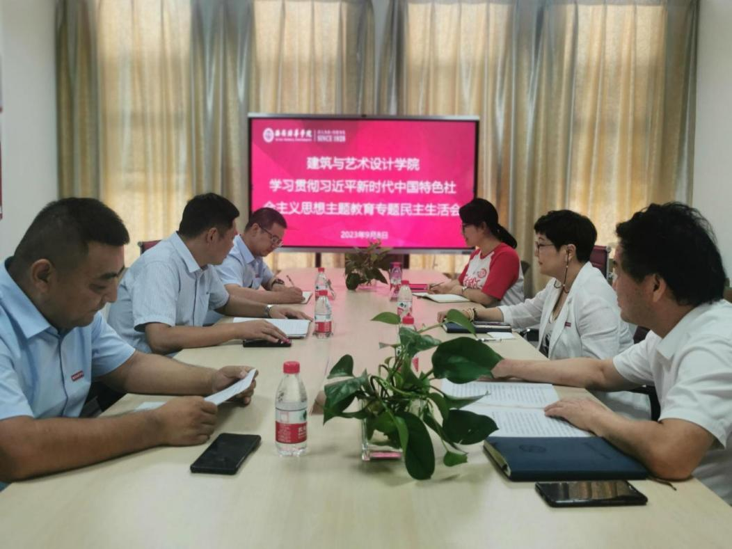 为切实加强党的思想建设,坚持不懈用习近平新时代中国特色社会主义思想凝心铸魂,按照校党委安排,结合学院实际,9月8日下午,建筑与艺术设计学院党委在汇知楼6324会议室举行学习贯彻习近平新时代中国特色社会主义思想主题教育专题民主生活会。校党委委员、党委学工部部长蔡亮到会指导,学院全体班子成员参加会议,会议由学院党委书记王飞主持。