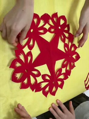 活动进行中,同学们都以饱满的热情投入到剪纸活动中去。学生第四党支部林思彤同学以锦绣中华为主题,动手实践,深刻领悟剪纸作品蕴含的寓意和情感。