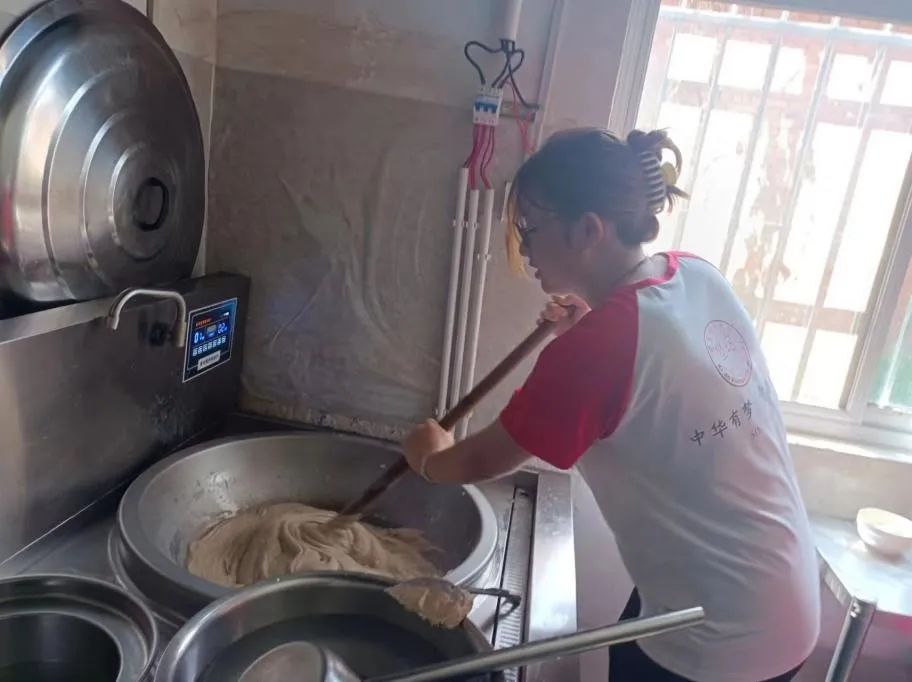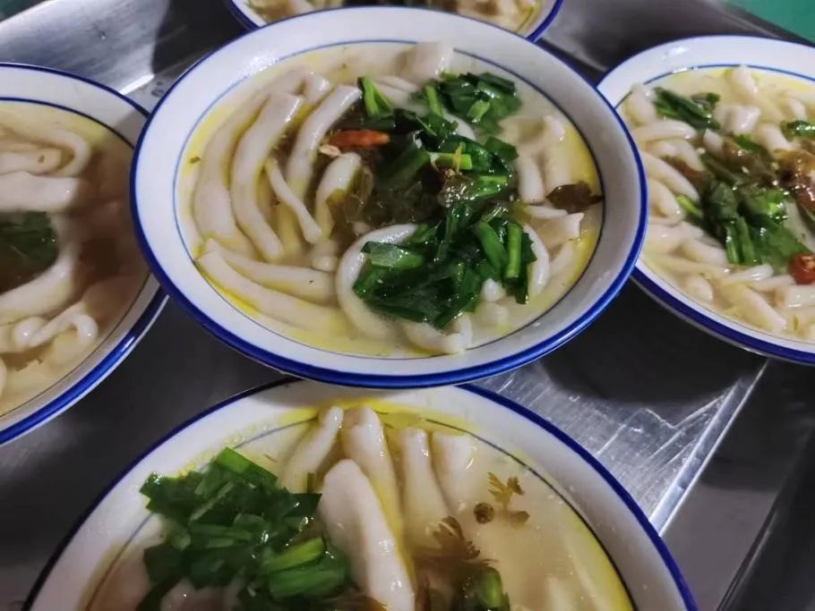 其中,最引人注目的是当地特色美食——搅团、凉鱼。搅团是一道传统的农家面食,制作过程需要将荞面和面粉搅拌后煮熟,再搅打成团。这道美食不仅有着独特的风味,更蕴含着当地人勤劳朴实的生活理念。队员们纷纷表示想要亲自体验这一传统手艺,于是,他们向主人请教并亲自上手尝试制作搅团。