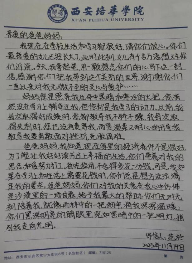 正如孙一鸣同学所说:“为人子女,要知道没有什么来日方长,趁着父母健在,趁着自己尚有所能,要在来得及的时光里,尽情孝敬和陪伴,让父母开心,幸福度晚年,让自己心安,无悔亦无憾。正如孙一鸣同学所说:“为人子女,要知道没有什么来日方长,趁着父母健在,趁着自己尚有所能,要在来得及的时光里,尽情孝敬和陪伴,让父母开心,幸福度晚年,让自己心安,无悔亦无憾。