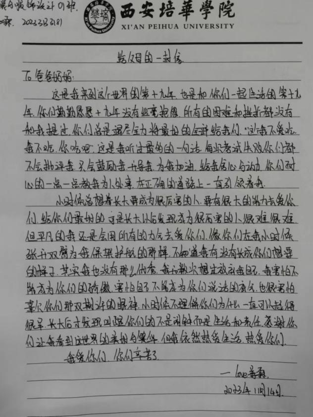 活动伊始,在活动部负责人王晗佳同学的有序组织下,同学们聚集在一起,将心中不曾与父母倾诉过的话语汇集成文字,执笔写下自己对父母的满腔感激与爱意,写成一张张满含深情的书信。