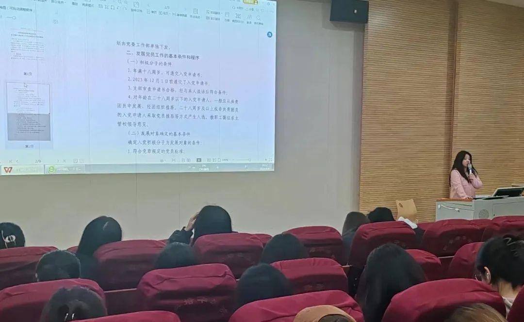 辅导员们在班级为同学们介绍了团员申请加入中国共产党的基本条件,解释了关于申请入党到入党积极分子的确定、培养到发展对象的确定、考察再到预备党员的接受及转正的相关流程,同时也向同学们讲解了入党积极分子的考核标准。