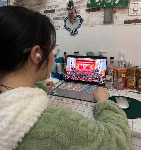 张霄楠:作为一名大学生党员,我怀着激动的心情观看了十四届全国人大三次会议开幕会,感悟颇多。本次通过观看开幕会,了解到各代表们来自各行各业,他们带着基层的声音和期盼齐聚一堂,为基层的实际问题共同探讨并解决。这让我感受到人民代表大会制度的强大生命力和显著优越性,它能够为人民参与国家事务提供了有效的途径 ,从而真正实现了人民当家作主。其中国内生产总值增长、粮食产量的提升、科技创新成果不断等等让我感到骄傲和自豪。聚焦新一年的目标和任务,我清晰认识到身为大学生党员的责任,我将会认真学习两会精神,努力学习专业知识,提升自身水平,为实现中华民族伟大复兴的中国梦贡献自己的力量。