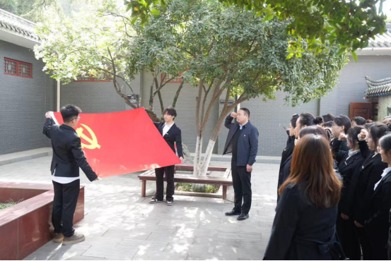 面对鲜艳的党旗,在刘斌书记的带领下,全体党员重温入党誓词。一句句坚定有力的誓言,回响在陵园上空,提醒着每一位党员牢记初心使命,以更加坚定的信念和饱满的热情践行对党的庄严承诺。