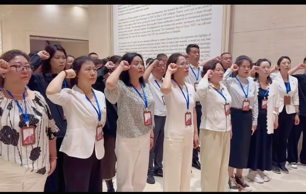 参观结束后,党员们在馆内对着党旗庄严宣誓,重温入党誓词,激励自己进一步坚定理想信念,永葆对党忠诚的政治品格。