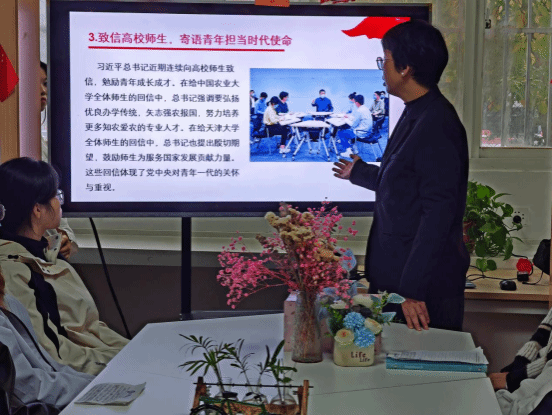 支部立足学生社区空间特点,将理论学习嵌入生活场景。在7号楼“党团活动室”举行的专题学习会上,支部书记兰佩洁以“青年成长与国家发展”为主线,结合社区党建案例,领学习近平总书记在国庆招待会、致高校师生回信等重要精神。通过“视频学习+分组研讨”,重点解读“中国式现代化”“全球发展倡议”等核心内容。临床医学专业党员王同学表示:“在宿舍楼里开展理论学习,氛围更亲切。总书记关于‘服务国家发展’的嘱托,让我更坚定了参与社区健康服务的决心。”