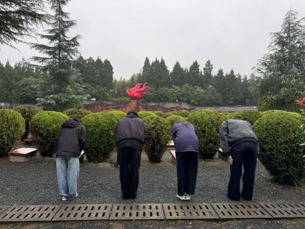 在革命烈士陵园。大家小心翼翼地擦拭墓碑拂去碑身尘埃,指尖轻抚镌刻的烈士姓名与事迹,在庄重的实操中感受英烈们为理想信念挺身而出的无畏气概,让红色缅怀从聆听走向践行。