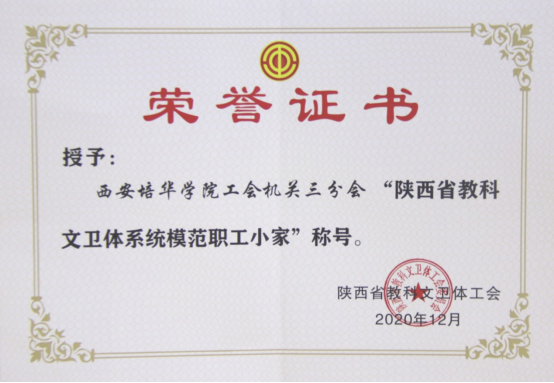 西安培华学院工会机关三分会被评为“陕西省教科文卫体系统模范职工小家”