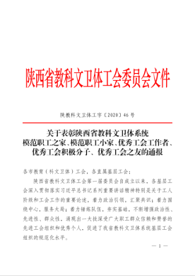 党惠敏被评为“陕西省教科文卫体系统优秀工会积极分子”