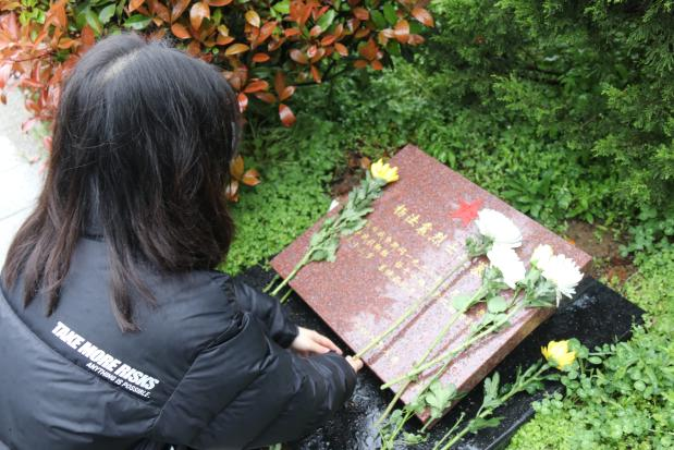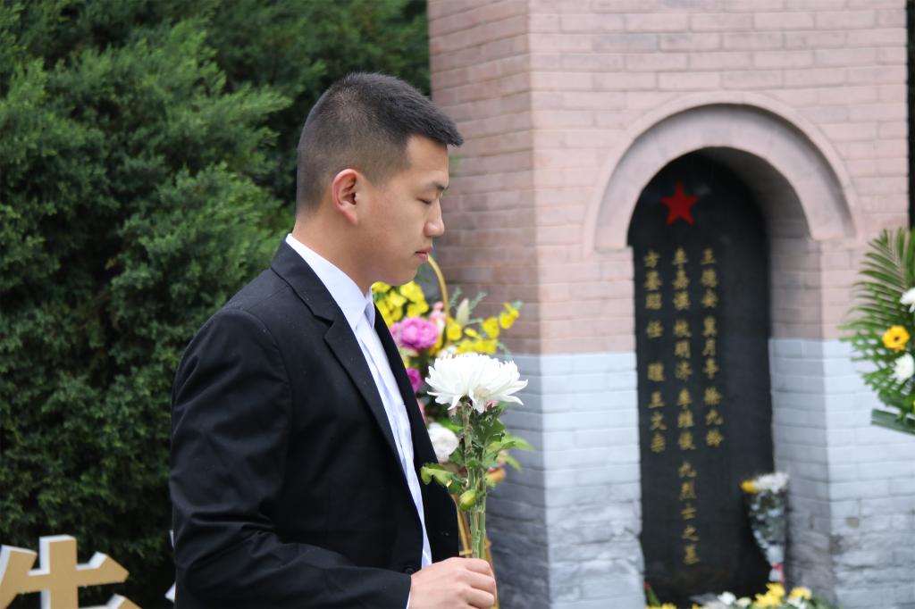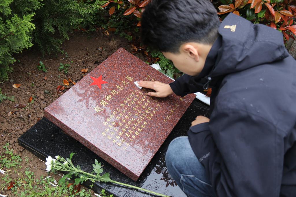 随后大家来到英雄墓碑前为英雄们献花拂去灰尘,大家满怀崇敬之情为革命烈士表达敬意和寄托哀思。