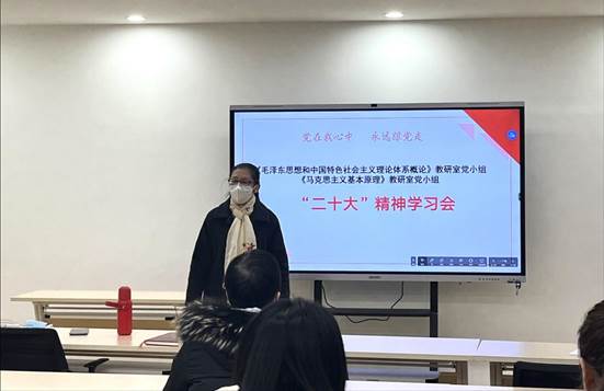 为认真贯彻落实二十大精神,探讨二十大精神如何融入所带课程,2023年2月20日马克思主义学院马原理教研室在2501B会议室召开了《马原理》教研室精神学习会。会议由刘娟老师主持,《马原理》教研室全体党员参加了会议。