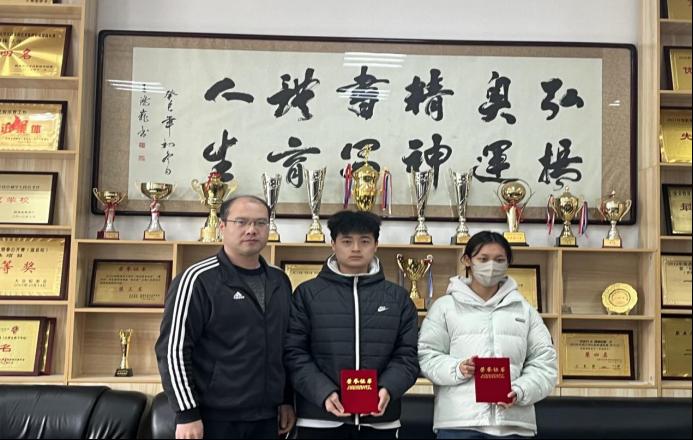 体育学院党支部书记马德厚为学生助理团先进工作者颁发荣誉证书