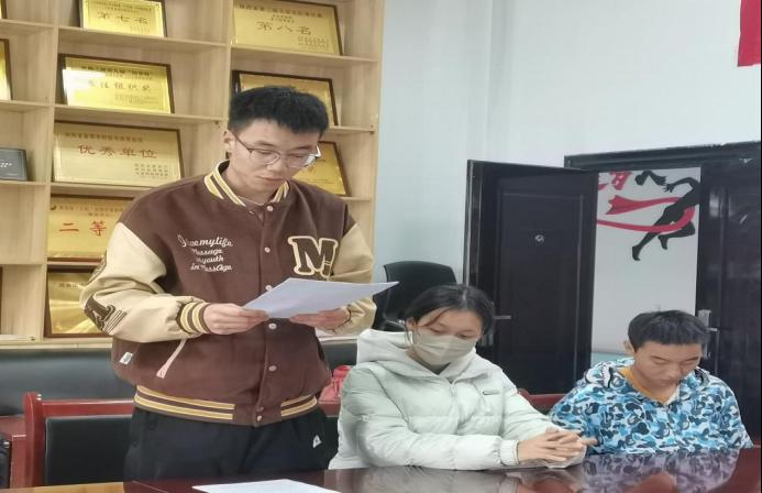 会议首先由体育学院党支部助理团团长高浩博同学宣读助理团工作职责,随后体育学院党支部书记马德厚为学生助理团先进工作者颁发荣誉证书,表彰他们在学生工作中的突出表现。