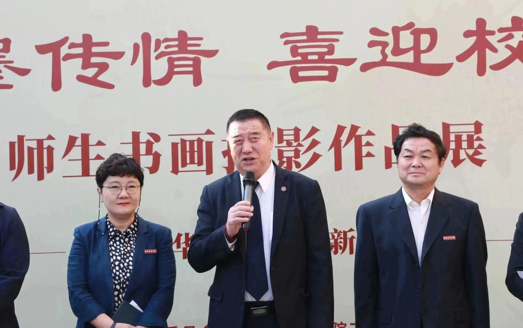 建筑与艺术设计学院常务副院长、校教职工书画摄影俱乐部主任徐莹宣布“翰墨传情 喜迎校庆”师生书画摄影作品展正式启动。